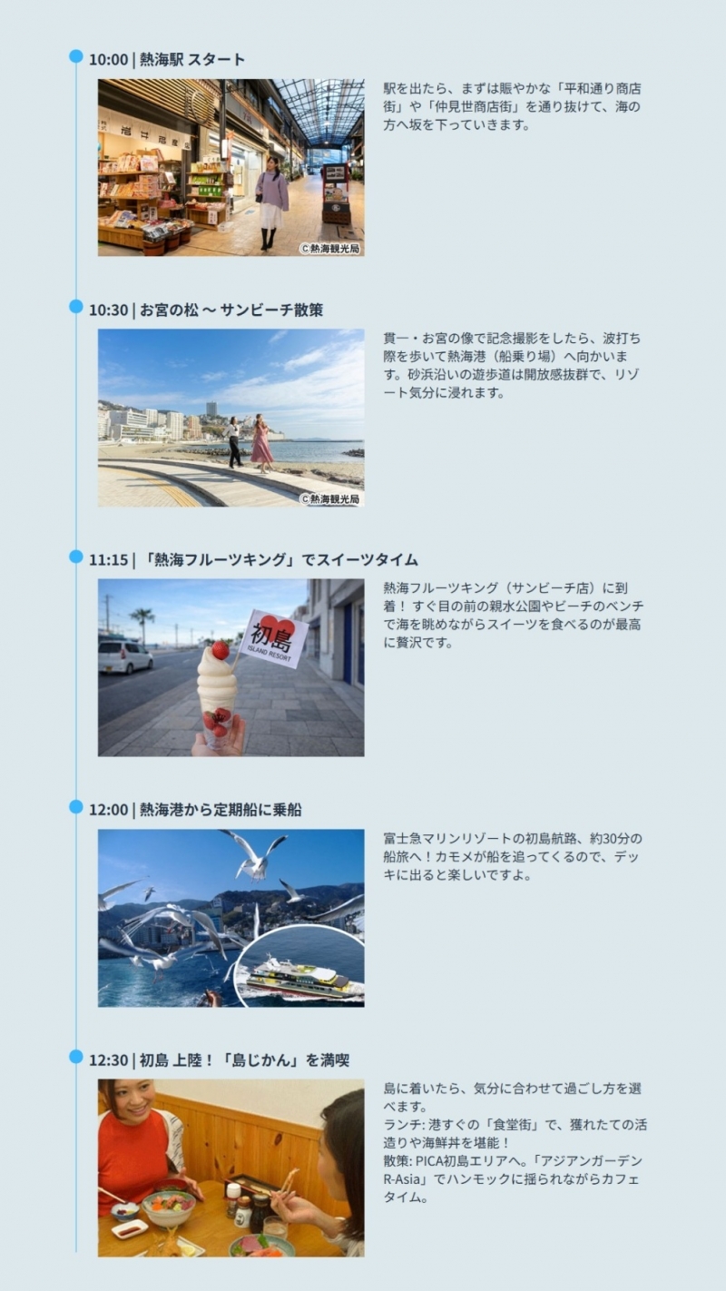 春の陽気を感じる熱海で、スイーツを片手に初島観光を是非お楽しみください。